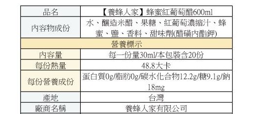 宜蘭養蜂人家蜂蜜醋系列600ml/罐(原味/紅葡萄) 👉3/5日結單  | [分享商店] 得速精緻百貨
