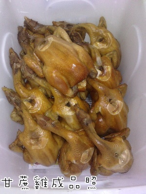 上圖為甘蔗雞成品以裝箱準備去市場販售了
