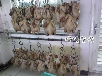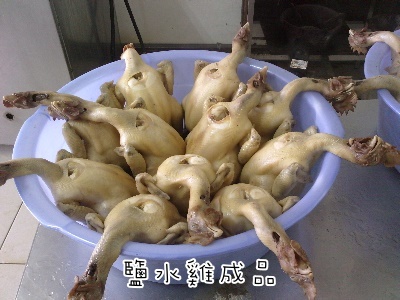 上圖為鹽水雞成品上未裝箱待冷