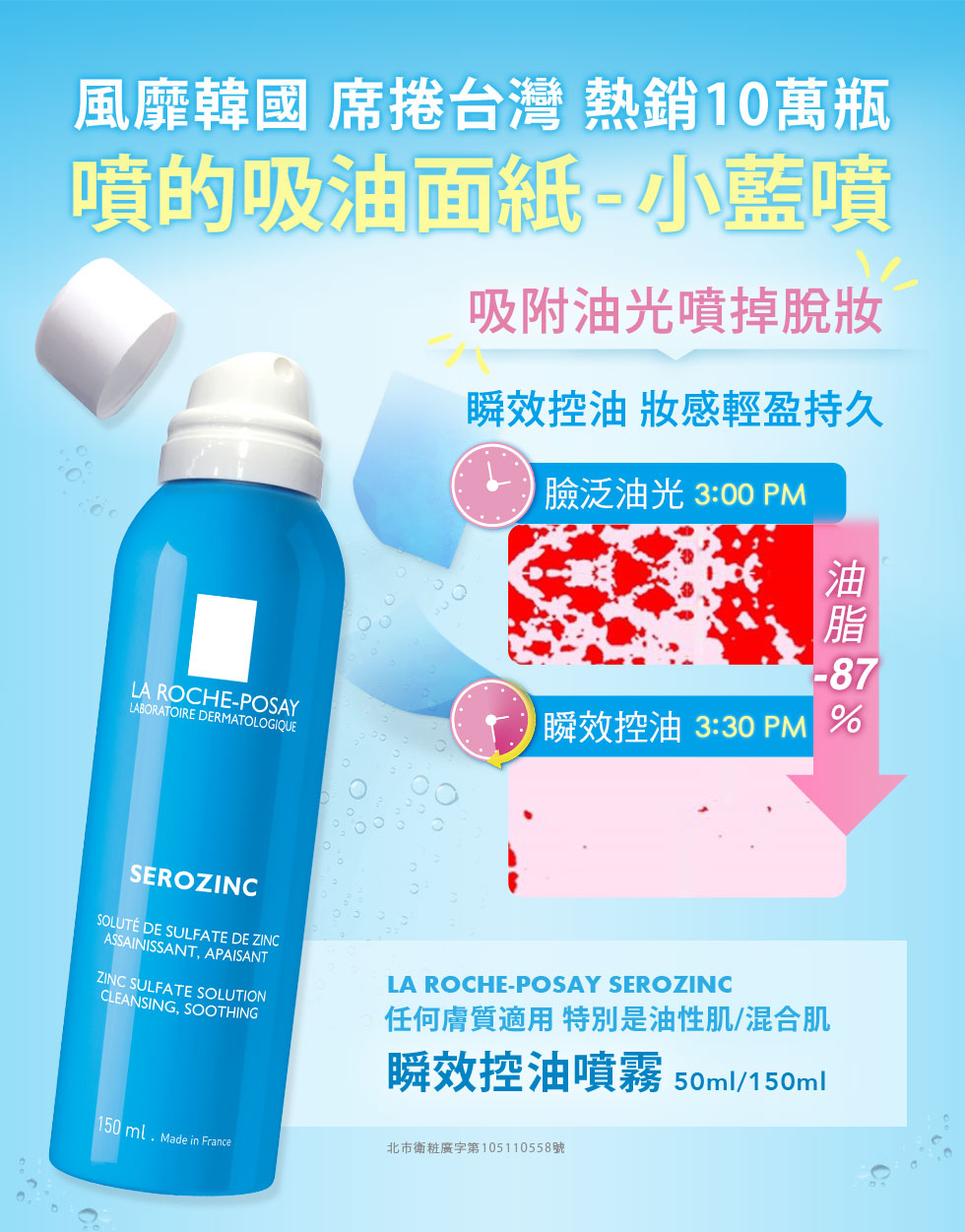 優 理膚寶水 La Roche-posay 瞬效控油噴霧 容量:50ML 隨身瓶  |