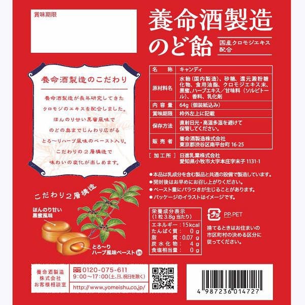 優 日本境內版🇯🇵養命酒製造 黑蜜雙層夾心喉糖/64g  |