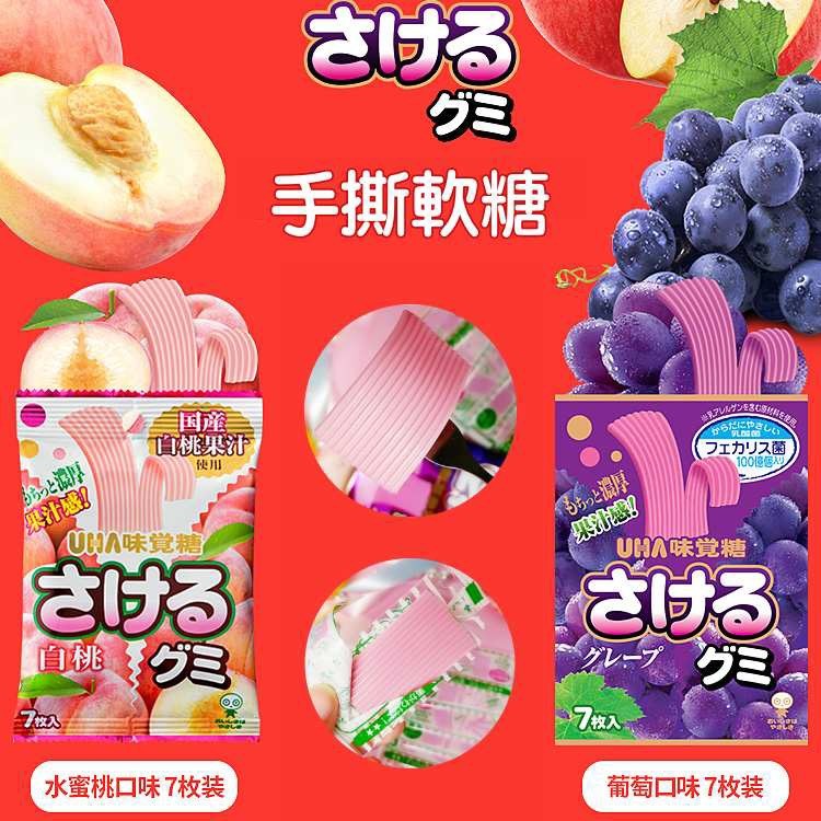 日本 UHA 味覺糖 撕吧 手撕軟糖一組2入!🍇葡萄 X 1+🍑水蜜桃 X 1  |