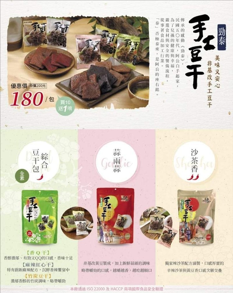 優 勁泰祖傳三代 非基改 手工豆干四款可選5/30收單  |