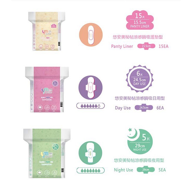 韓國🇰🇷悠安美U&M 秘帖涼感瞬吸衛生棉1+1 3 款可選  |
