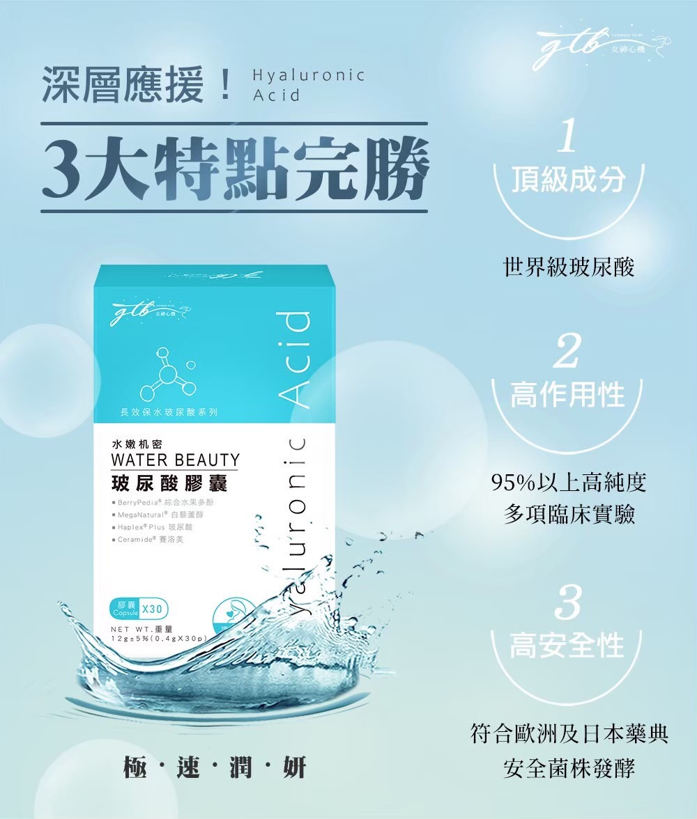 媲美醫美的保濕聖品玻尿酸膠囊讓肌膚保持水漾Q彈的透光肌。 |