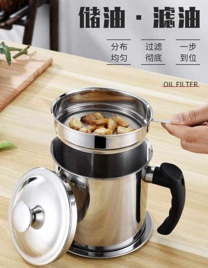 3/24(三)取貨 ~304不鏽鋼過濾儲油罐(托盤+油壺+過濾網+蓋子}四件套組  | [分享商店] 隆翔百貨