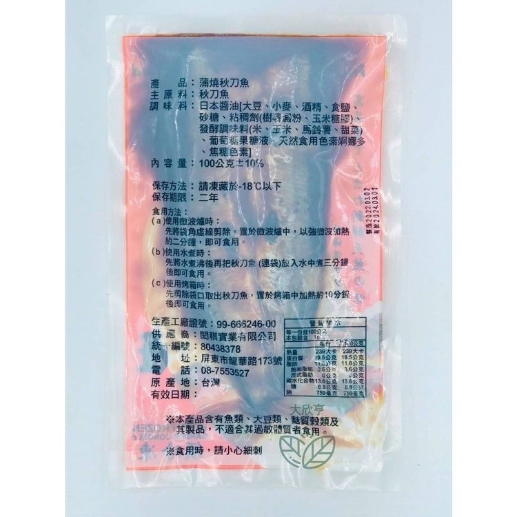 日式蒲燒秋刀魚(100g±10%/片)