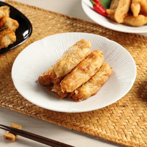 芋頭捲:新鮮腐皮裹著魚漿、芋頭、洋蔥等內餡,腐皮的酥脆與芋頭的濃郁搭成絕配,不沾醬就很好吃!
