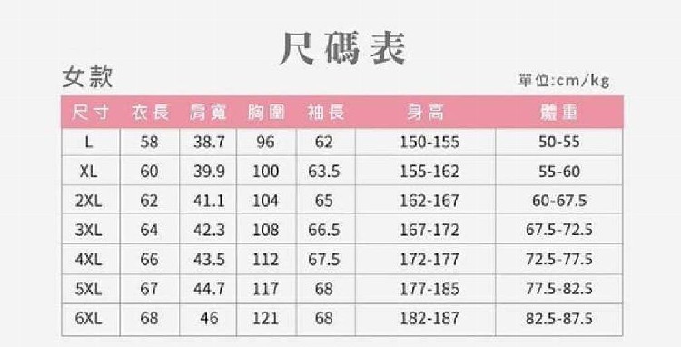 尺碼:L-5XL (請參考圖片說明)
