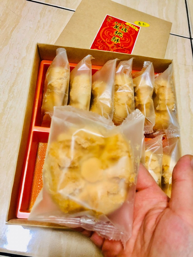 這個桃酥 真的很純正 滿滿杏仁味 (真材實料) 不過小屁孩 不愛那個味道