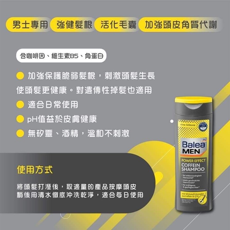 Balea MEN防脫髮男性咖啡因Q10豐盈洗髮精/250ML #德國原裝進口正品   |