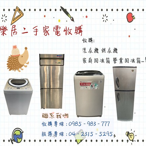 二手家電秉持著綠能、減碳、珍惜、環保、節約的精神而成立,多一分製程地球就多一些負擔,收購您府上佔空間或鮮少使用的各式家俱、家電,經過維修保養再以低價售出給有需要的客戶,減輕環境負擔,1000坪賣場內有各式二手、二手家電、庫存家俱、OA辦公家俱 等各項商品,堅持品質、物美價廉、專業、確實、親切、效率是服務大眾的堅持信念,完整的服務團隊,收購流程絕不拖泥帶水,如果您有搬家、租屋汰換家俱的困擾,隨時歡迎聯絡樂居二手家電。中古二手家電/中古二手電器買賣回收/中古二手電冰箱收購買賣回收/中古二手洗衣機買賣回收(單槽洗衣機/滾通洗衣機/洗脫烘)中古二手冷氣收購買賣回收/窗型冷氣/分離式冷氣/變頻冷氣收購買賣回收/二手電視/液晶電視(LCD,LED)中古二手除溼機/收購全新中古二手電器。