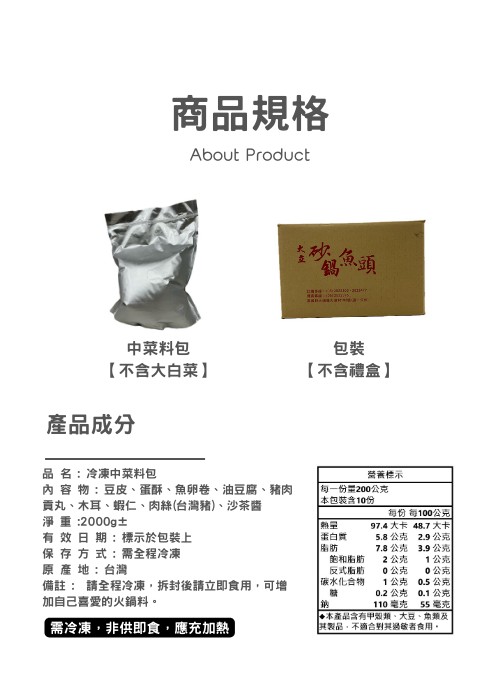 大立砂鍋魚頭 8倍數 運均攤 許願回購 過年團 |  |