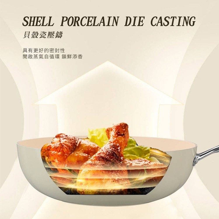 貝殼瓷煎炒不沾鍋(含鍋蓋)28cm