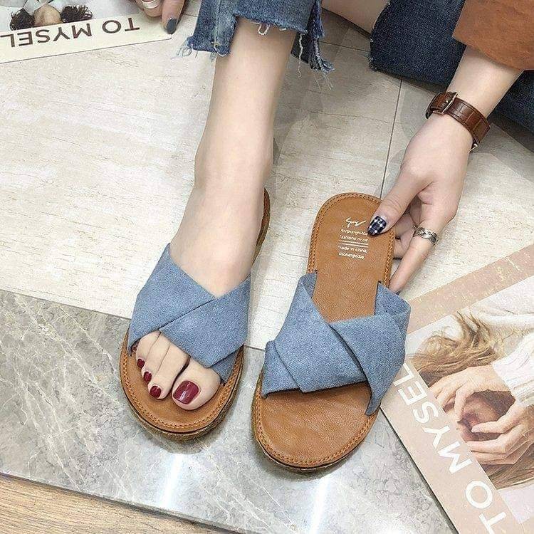 藍色🛒秋款韓版時尚氣質交叉拖鞋❤️