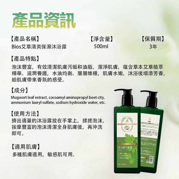 🛁日本Bios 艾草清爽保濕沐浴露 500ml🌿