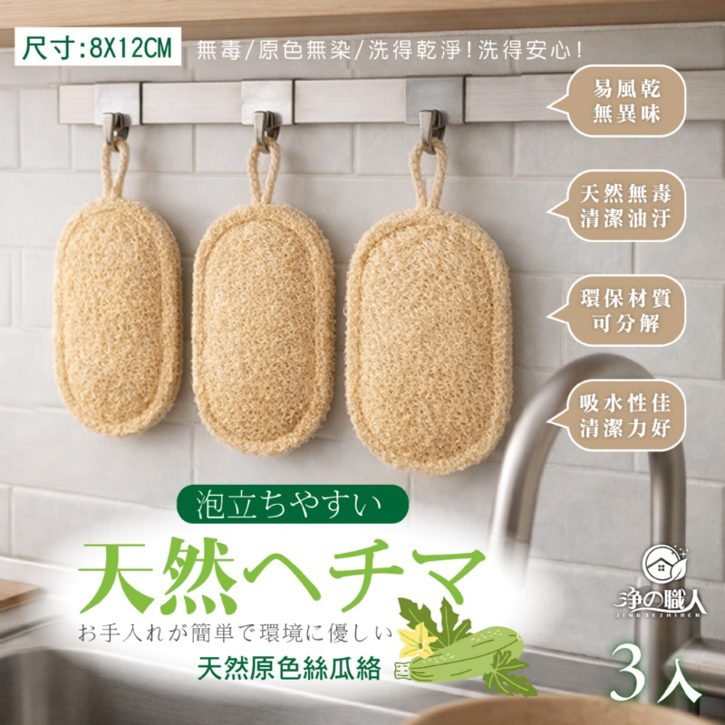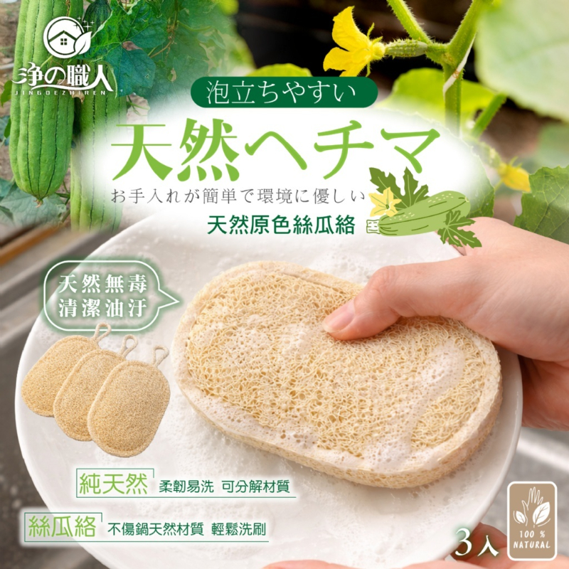 【淨の職人】天然原色絲瓜絡 +1=3入/組~純植系💚天然無漂原色!!☑不傷鍋☑不刮手☑免化學也好洗🧽 👉1/12日結單  | [分享商店] 有利商行