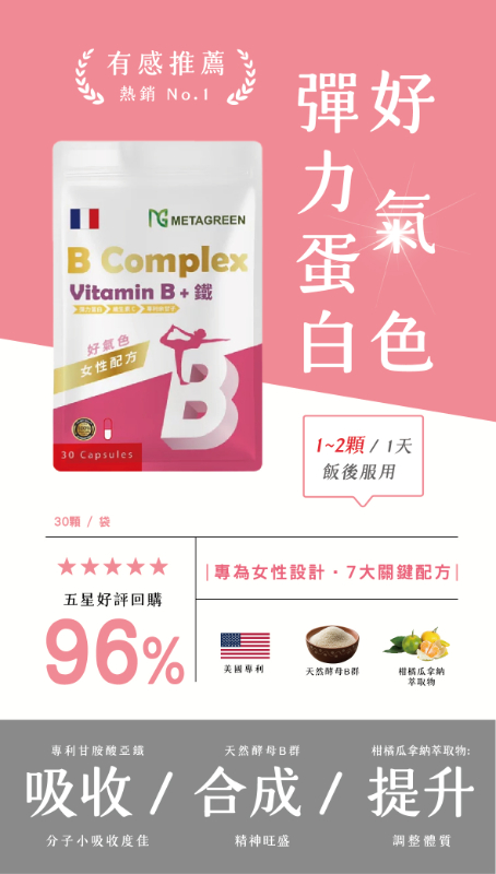 打造蘋果肌の女性配方❤️B群+鐵0.6公克/顆 ; 30顆/袋
