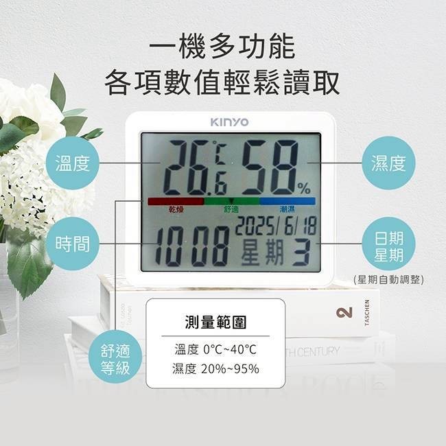 KINYO 萬年曆大螢幕溫濕度計 (TC-25)