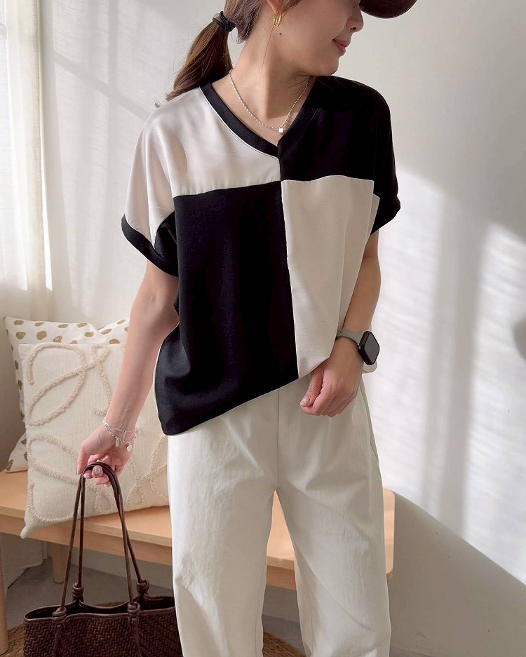 🏠V領配色拼接涼棉T✨🧊❤️ ⏰3/5收單   |