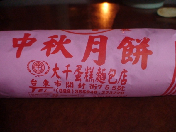 就是這樣一條~~粉紅紙包裝~非常的古早味!!~~ 切開是滿滿的綠豆餡