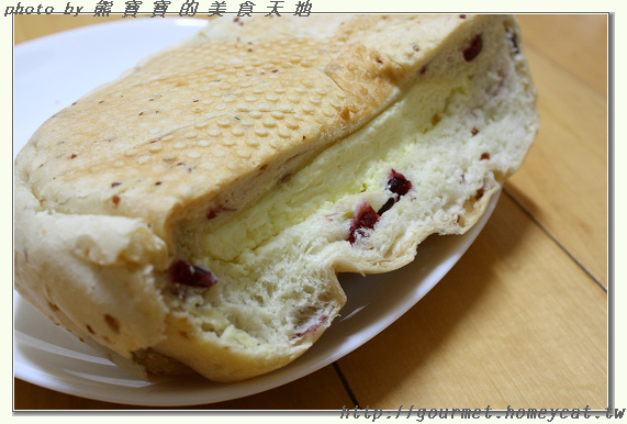 ★「蔓越莓乳酪堡」★$60 葡吉麵包另一招牌商品之一 麵包體吃起來鬆軟有彈性,還夾雜著酸甜多汁的蔓越莓; 中間則是夾著飽滿的白色乳酪餡,口感濕滑柔順,呈現出輕甜的奶味. | ||||||||||||||||||
