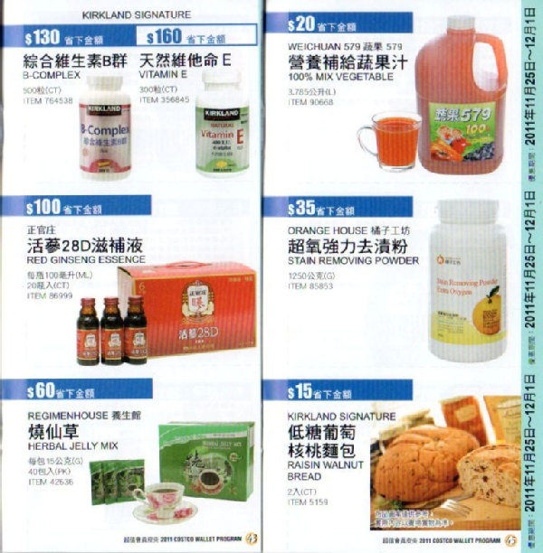 Kirkland Signature合維生素B群 原價629 特價499Kirkland Signature天然維他命 原價669 特價509正官庄活蔘 28D滋補液 原價1099 特價999養生館燒仙草 原價289 特價229