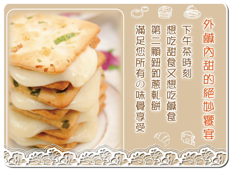 上班時、看電視時、三五好友聊天時,隨時隨地來一片,讓鹹甜交織的美味蔥軋餅精彩你的每一個悠閒時刻!