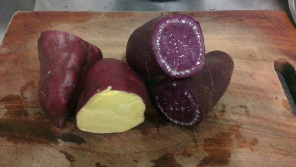 右:紫色芋頭蕃薯;口感鬆軟但沒黃色這麼甜,富含鐵質,女生可以多吃