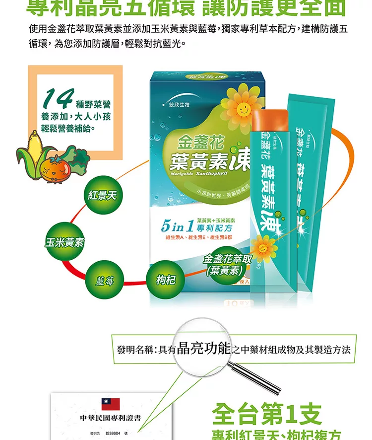 ●使用金盞花萃取葉黃素.添加玉米黃素、山桑子獨家