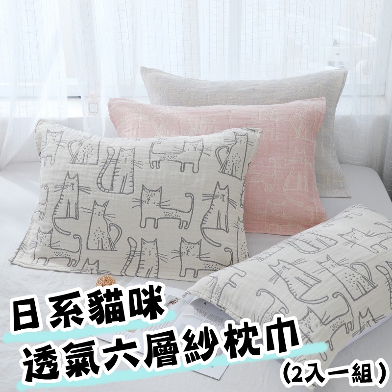 11/6收單(預購)日系貓咪透氣紗枕巾(2入一組) | [分享商店] 歪嘴姬家族商店(請其他主購勿開團下單)
