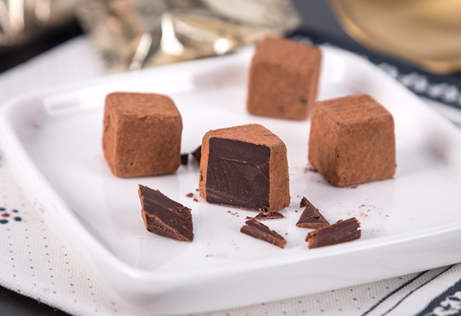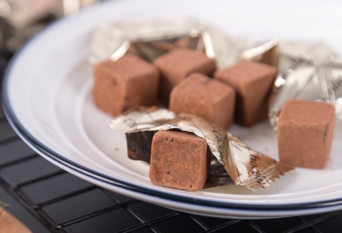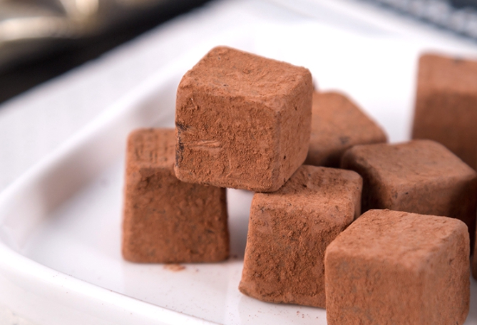 👉再加上《入口即化》的絕妙口感,從外型上看,切成整齊的小方塊,裏上細膩的可可粉