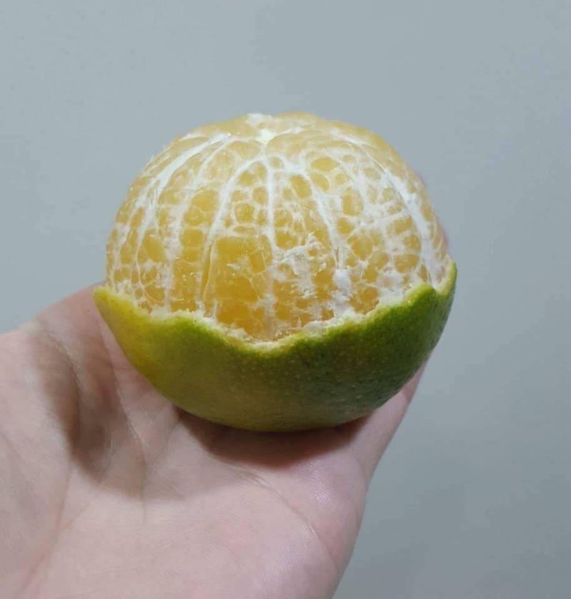 帝王柑的季節性格特別明顯,10月中旬─11月初的帝王柑皮還是綠的,略帶青澀氣息,比較接近椪柑,清爽微酸,但是在11月中下旬後,轉色變黃,汁液充足,果肉軟嫩,完全沒有酸味,兩者簡直就像不同品種的水果