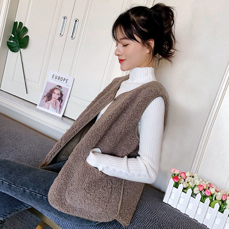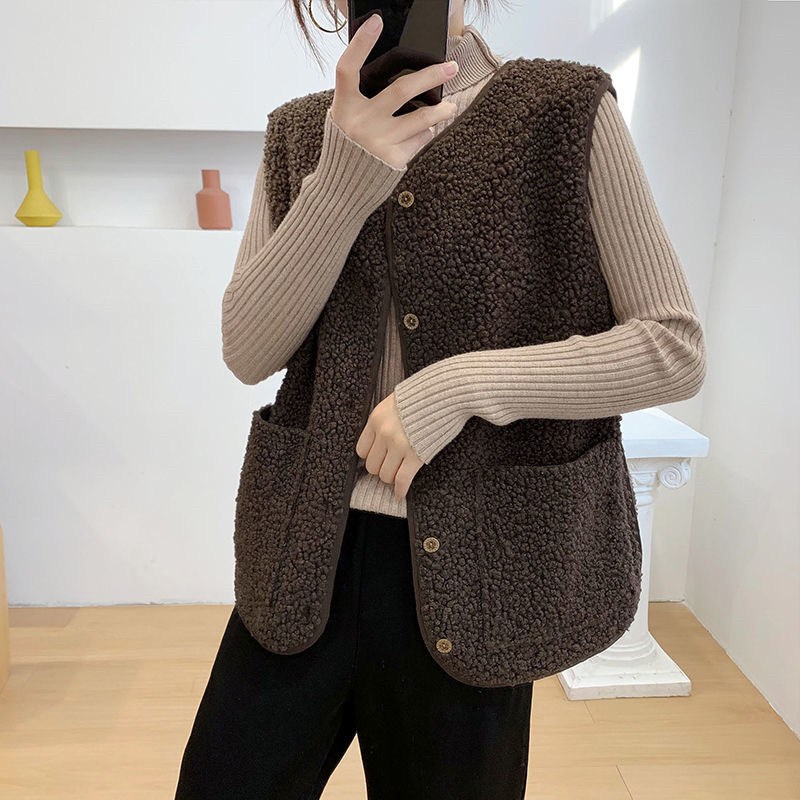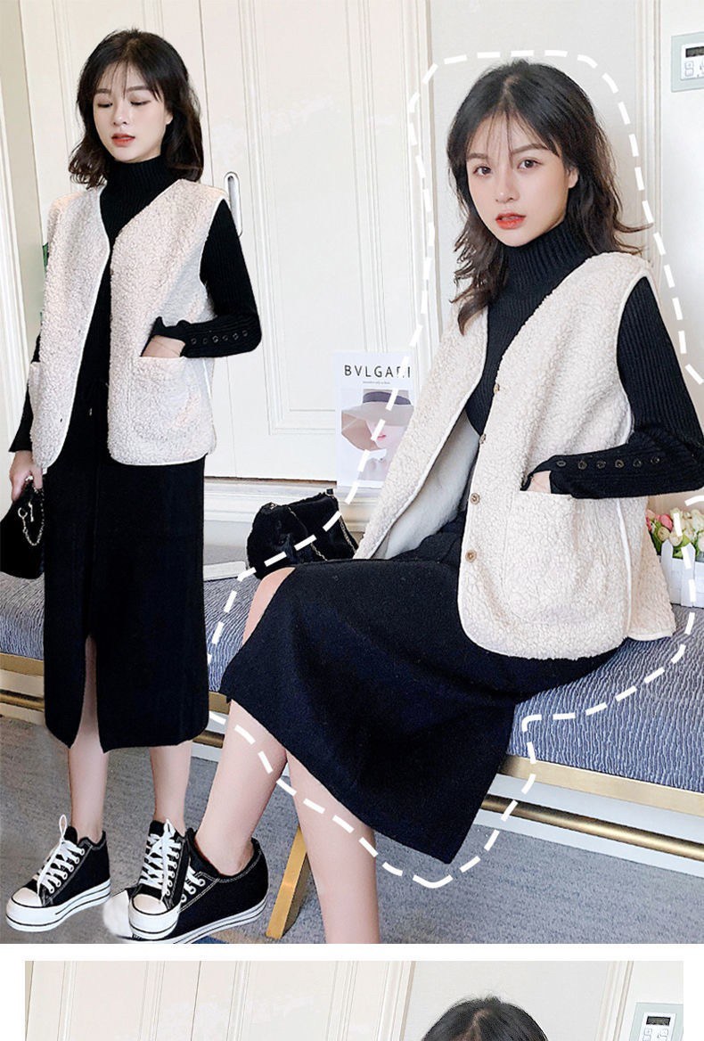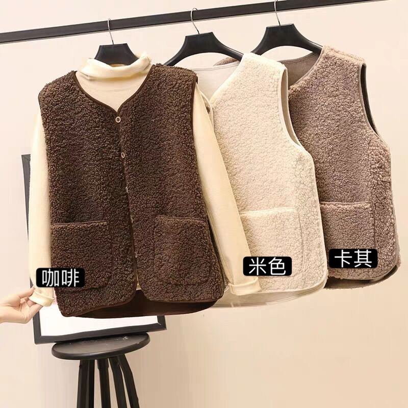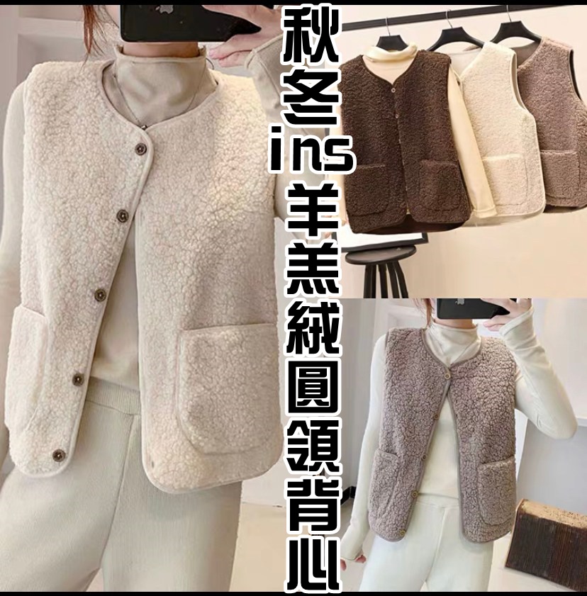 秋冬ins羊羔絨圓領背心