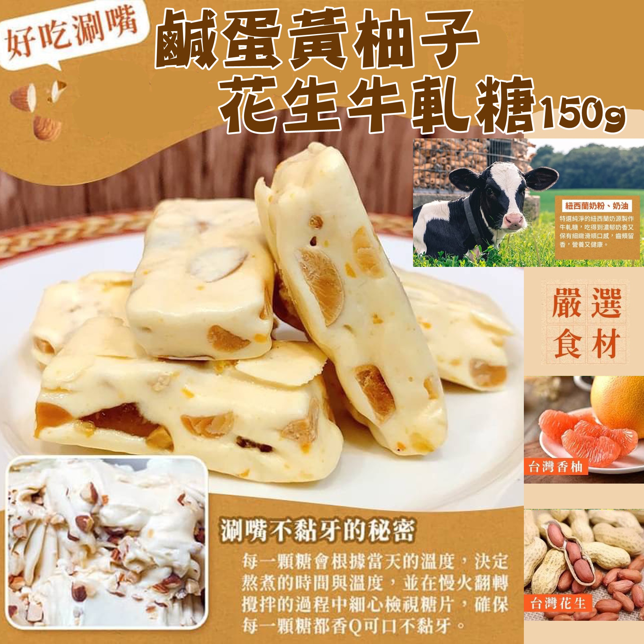 鹹蛋黃柚子花生牛軋糖150g