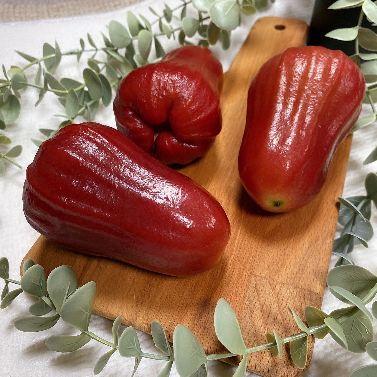 屏東枋寮產的子彈蓮霧,果形飽滿,形狀較一般蓮霧來得瘦長,