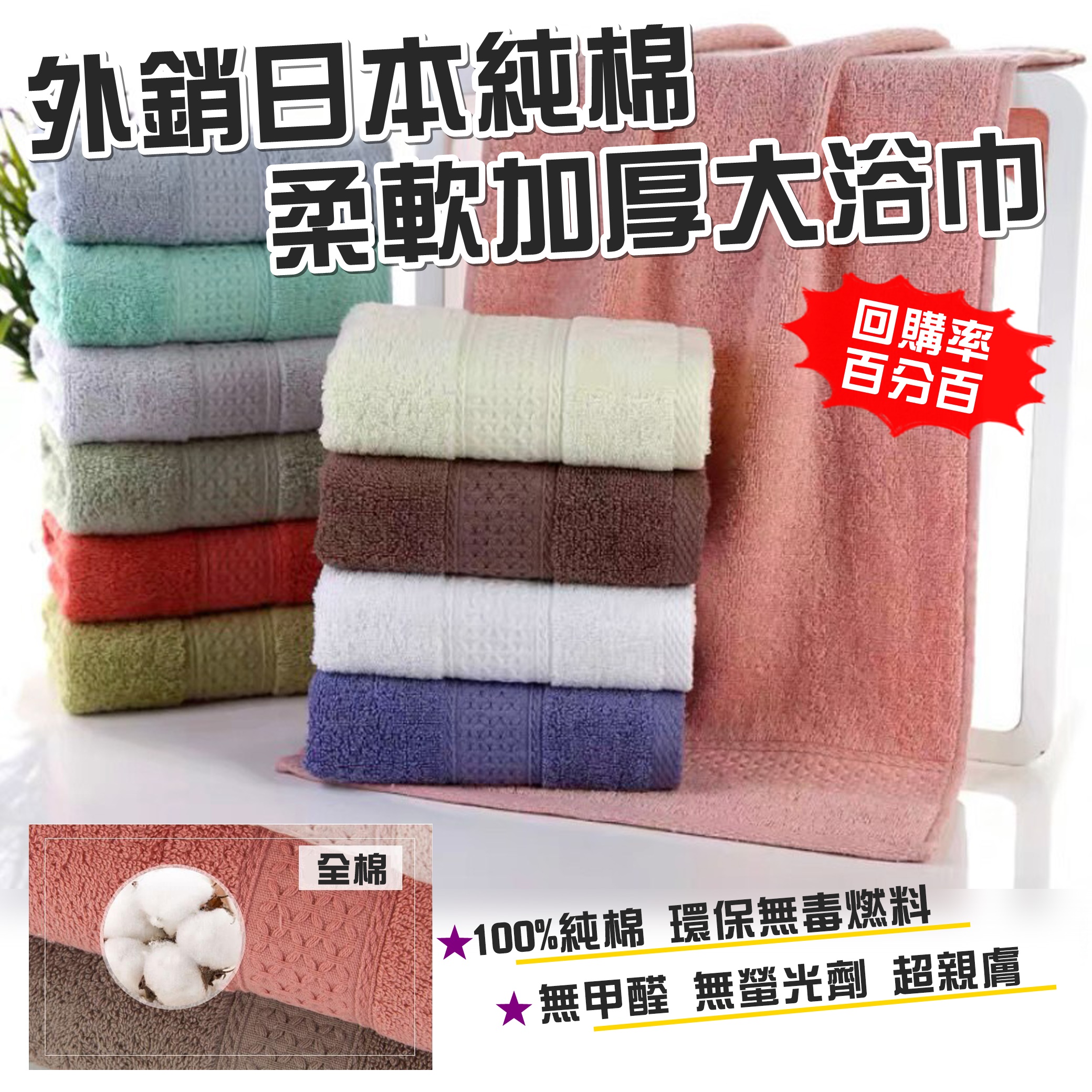外銷日本純棉柔軟加厚大浴巾