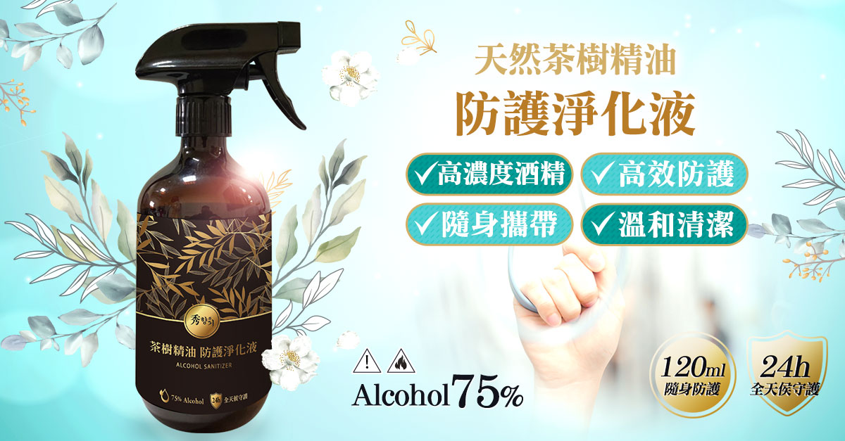 📌75%酒精+茶樹精油 雙重防護