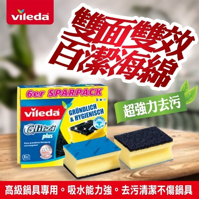 德國Vileda雙面百潔海綿高級鍋具專用(六入/盒)
