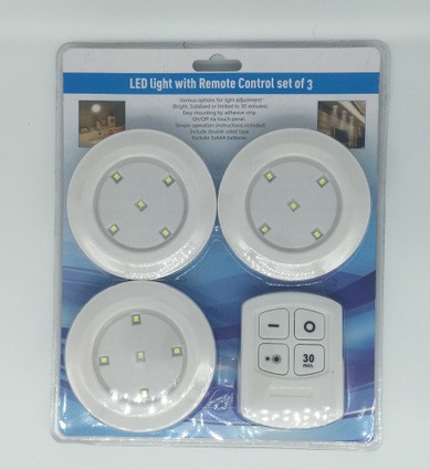 一組3個燈滿足您的須求尺寸:燈:約9*9*1.7cm/遙控:約8*6.5*2cm功率:約0.3w規格:燈*3+遙控*1