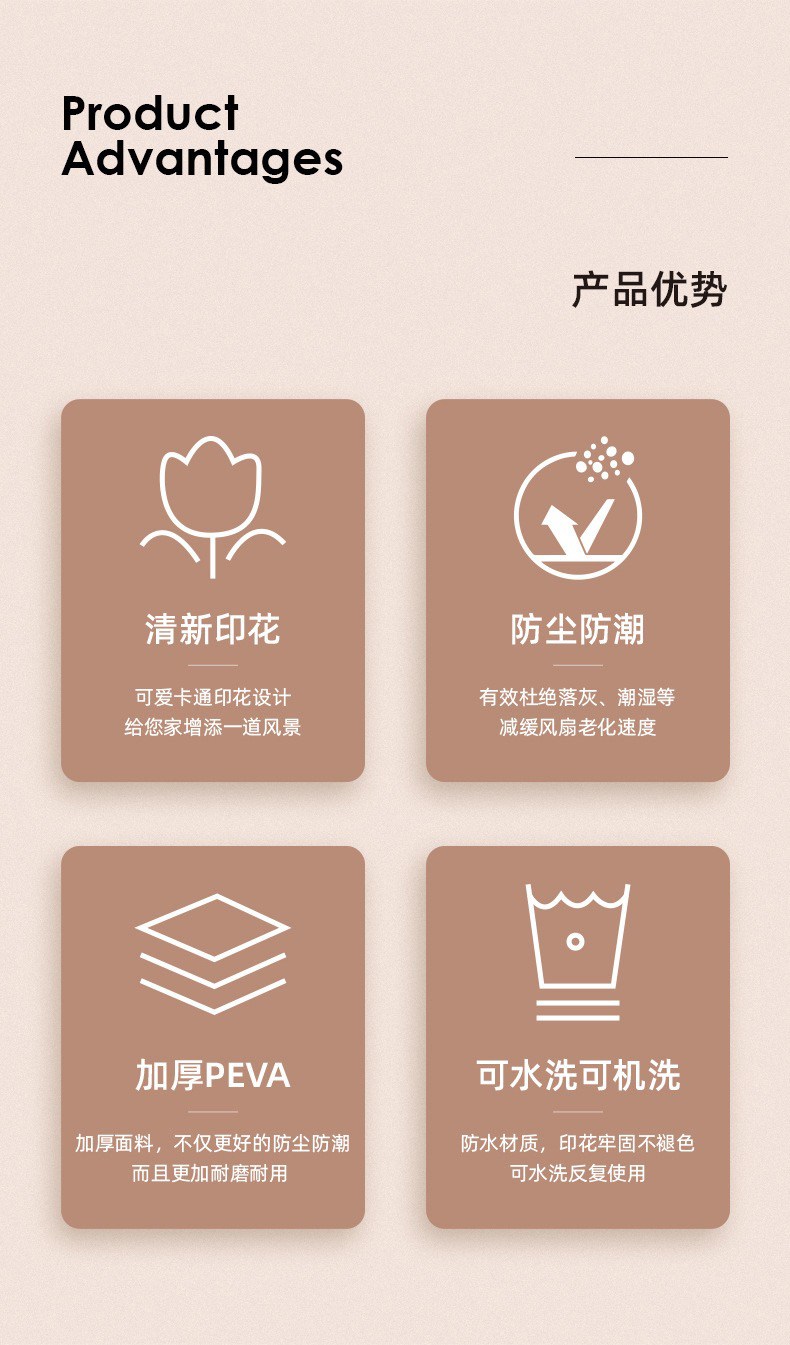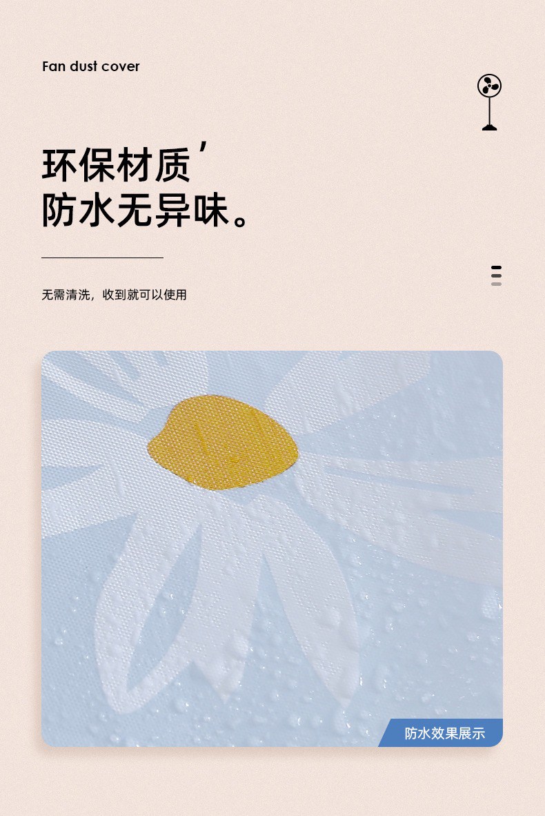 ⭕️採用PEVA材質密度高,遇水成珠更好的排除空防止氧化延長風扇使用壽命