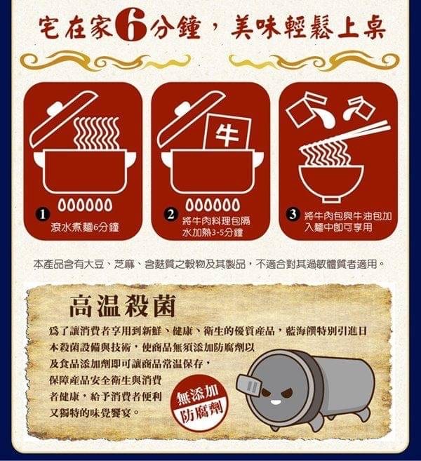 讓你在家輕鬆能享用用到源自台灣道地好味道,祖傳的秘製配方,湯頭溶入牛肉的精髓!