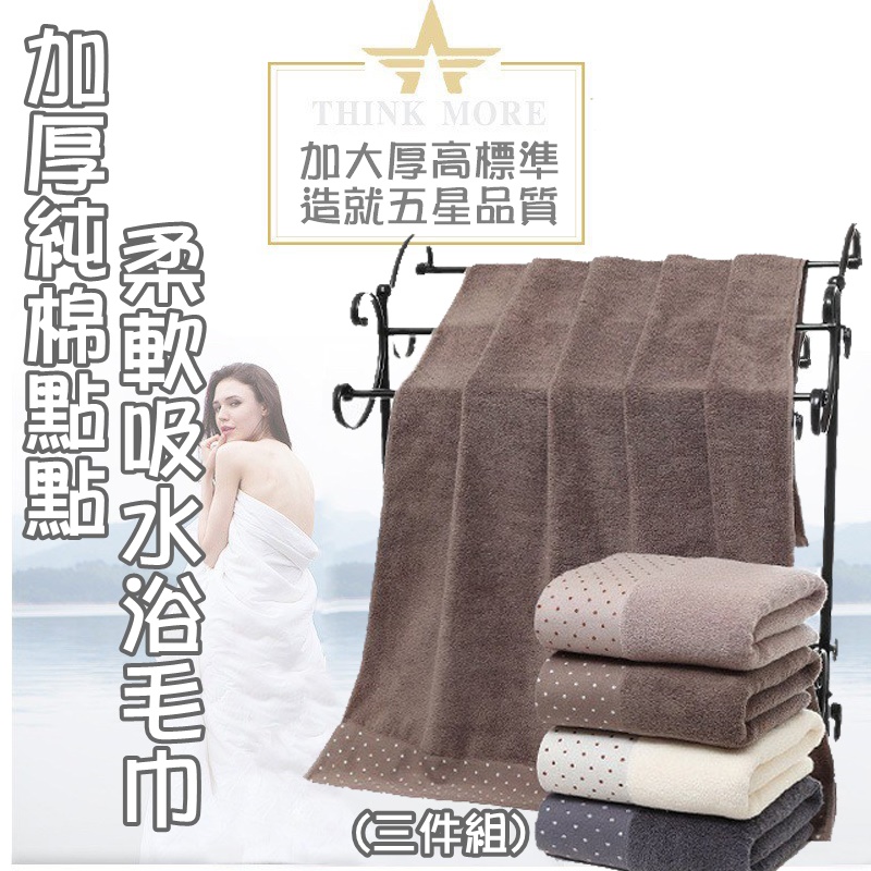 加厚純棉點點柔軟吸水浴毛巾(三件組)