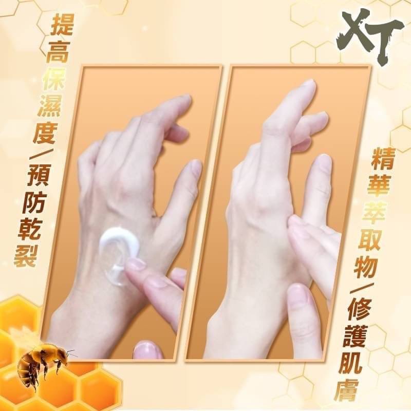 XT 萃取蜂巢中的寶藏 - 蜂王乳精華,富含不飽和脂肪酸與豐富的氨基酸、維生素,修復手部肌膚、減少乾澀,即使是最乾裂的手,也能讓它們沐浴在極致修護成分的滋潤中。