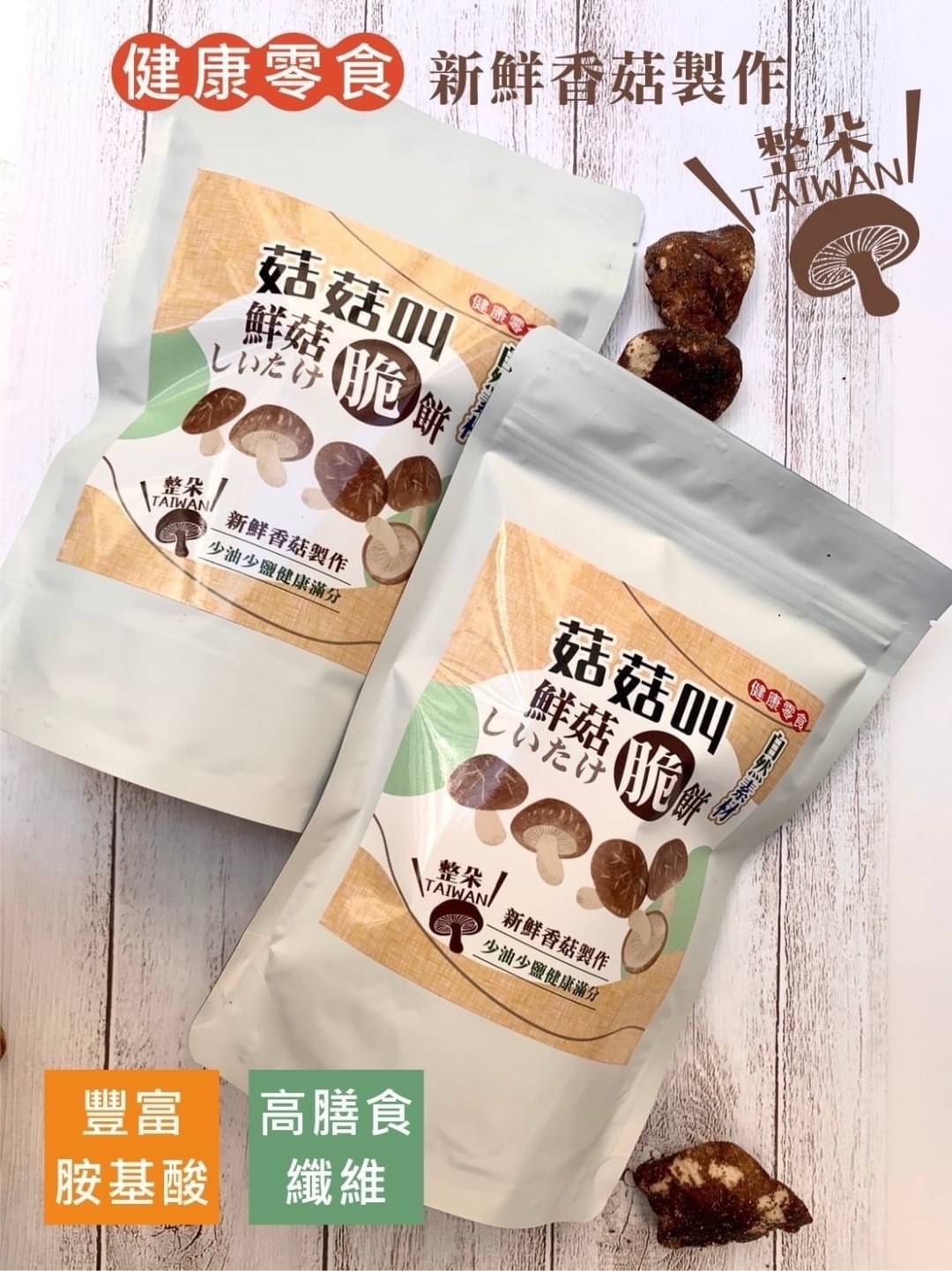 🍄我們嚴選整朵新鮮埔里香菇,研發成為美味又可口的『菇菇叫 - 鮮菇脆餅』