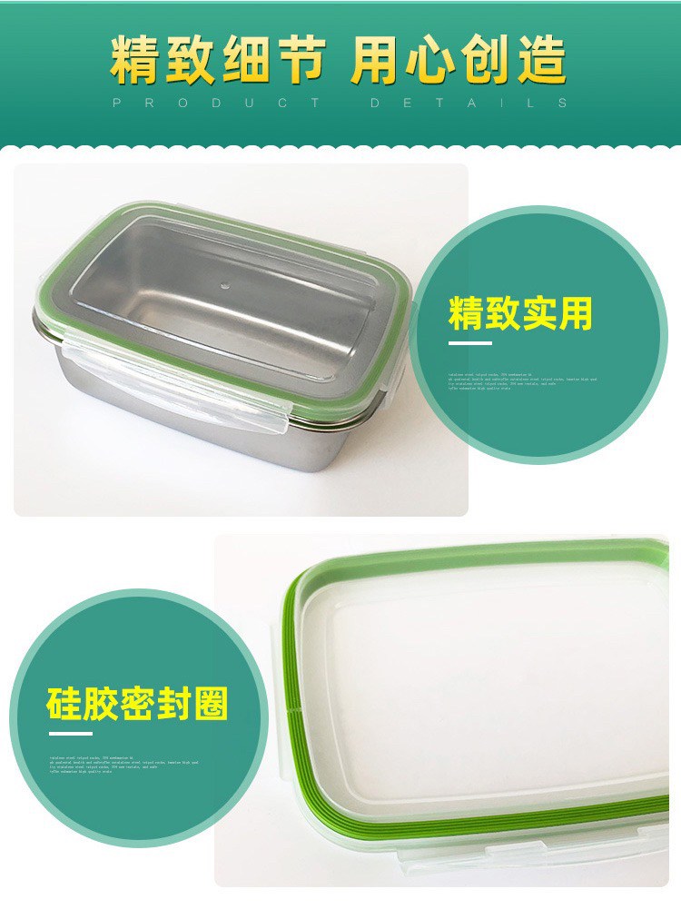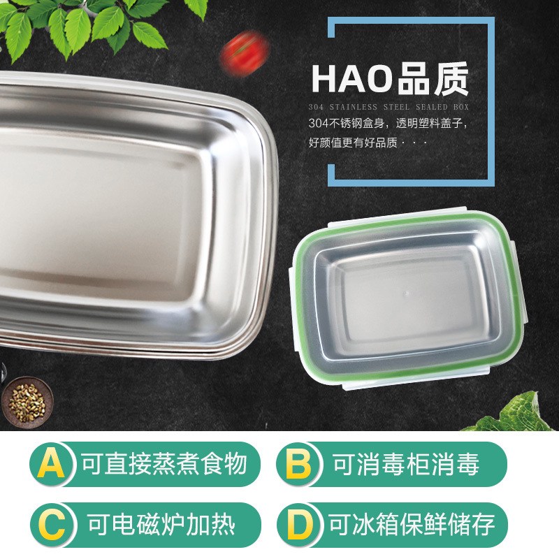 優質材質,安全無毒用得放心解凍、保鮮、加熱~一次到位一盒多用,滿足您的不同需求加厚304不鏽鋼,四面卡扣密封質輕耐摔,方便攜帶蒸煮、烤箱、電磁爐皆可使用
