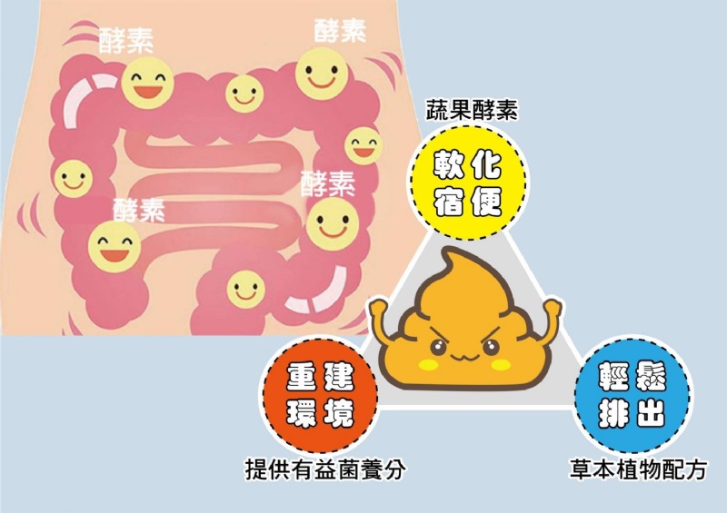②果寡糖提供有益菌養分、纖維質幫助維持消化道機能、軟化宿便使排便順暢