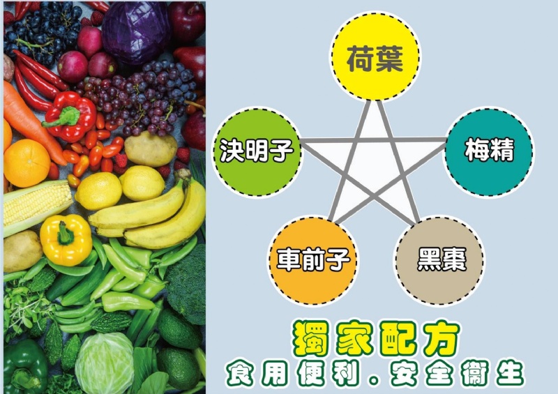 「猴頭菇子實體」、「梅精」、「決明子」、「荷葉」,
