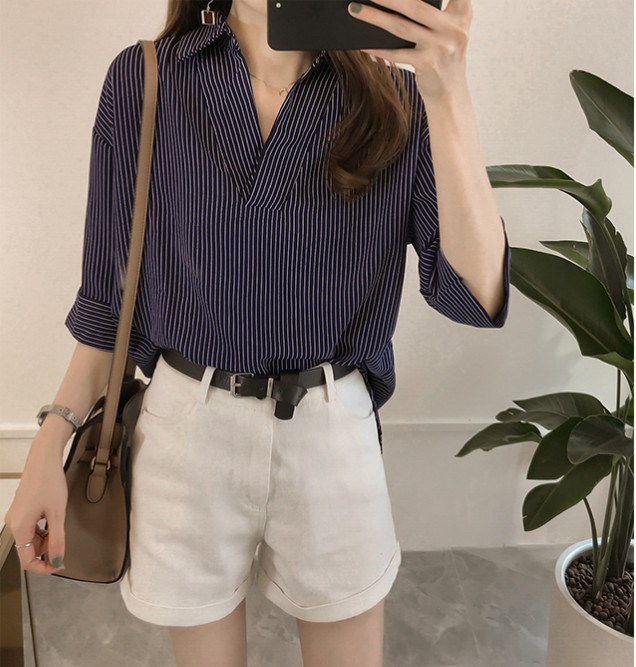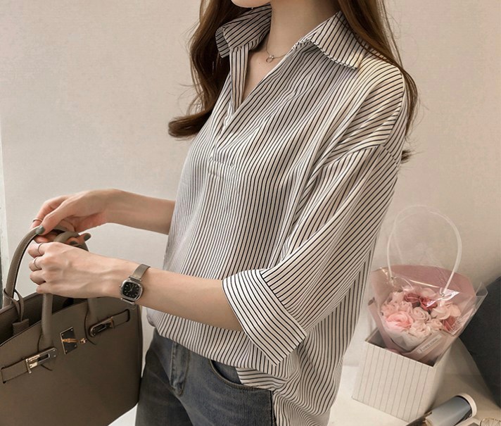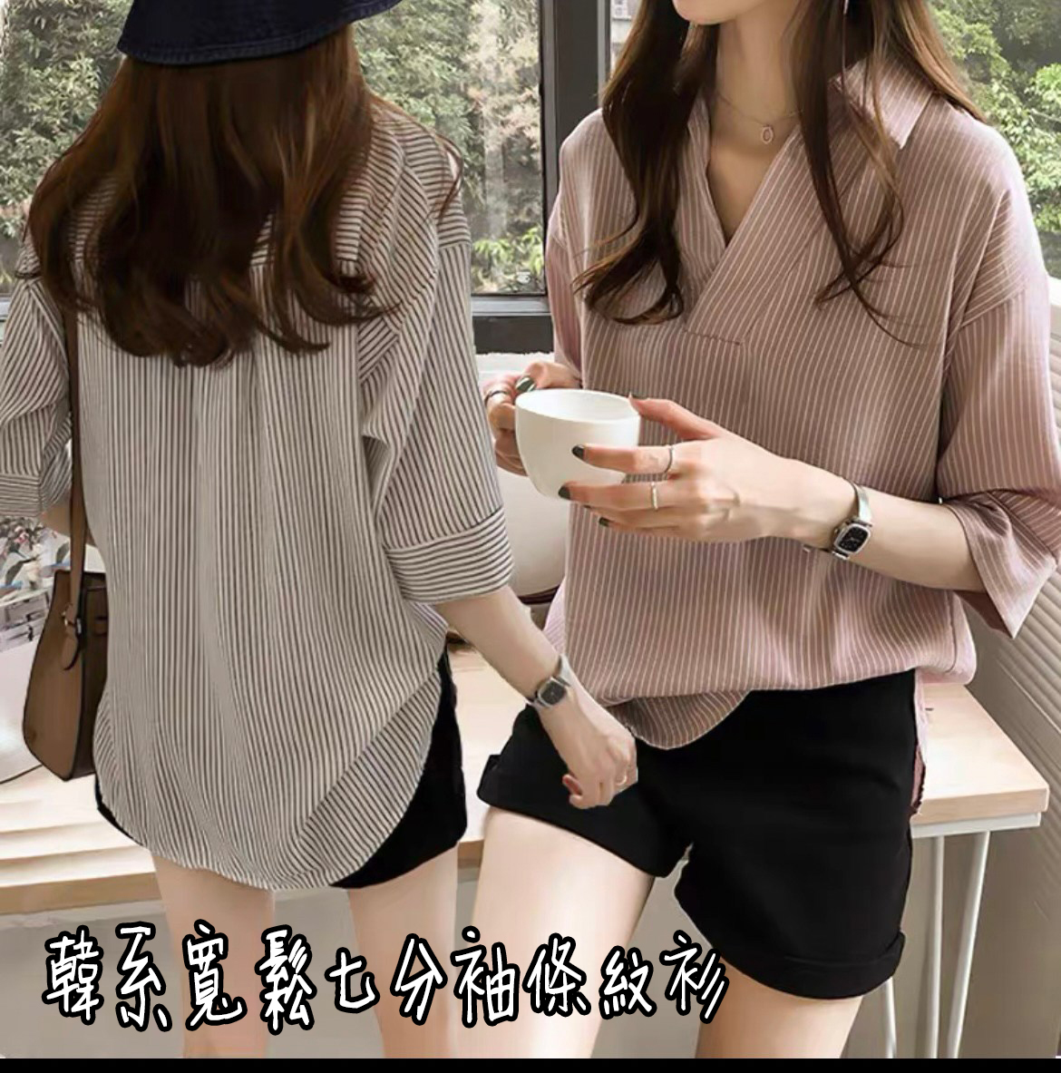 (預購)-百榙好看 - 熱銷新款-最大件有4XL -( 韓系寬鬆七分袖條紋衫) | [分享商店] 歪嘴姬家族商店(請其他主購勿開團下單)
