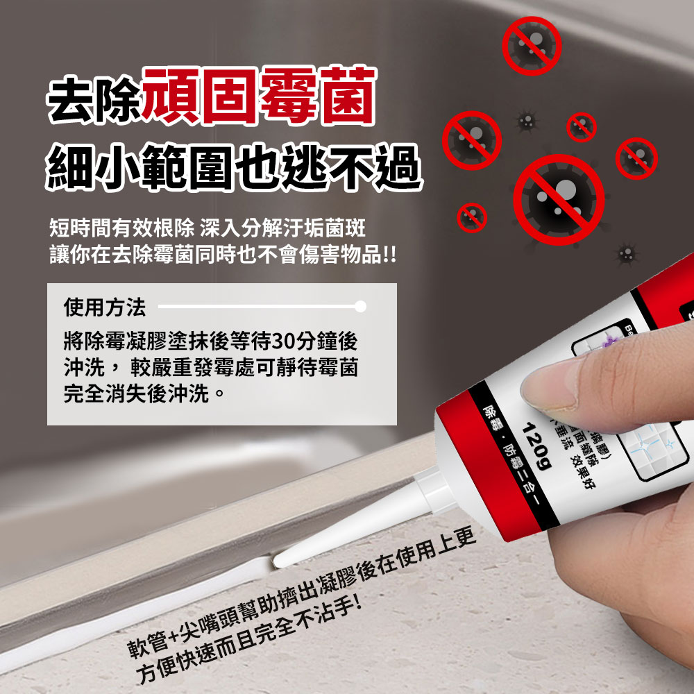 只要塗抹除霉凝膠,靜置等候,輕鬆不費力👌